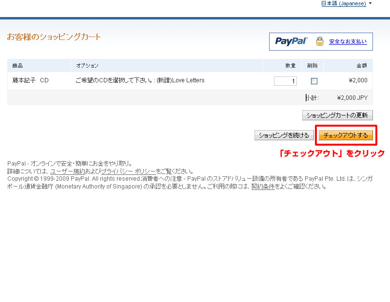 1.ご購入の内容を確認の上、「チェックアウト」をクリック